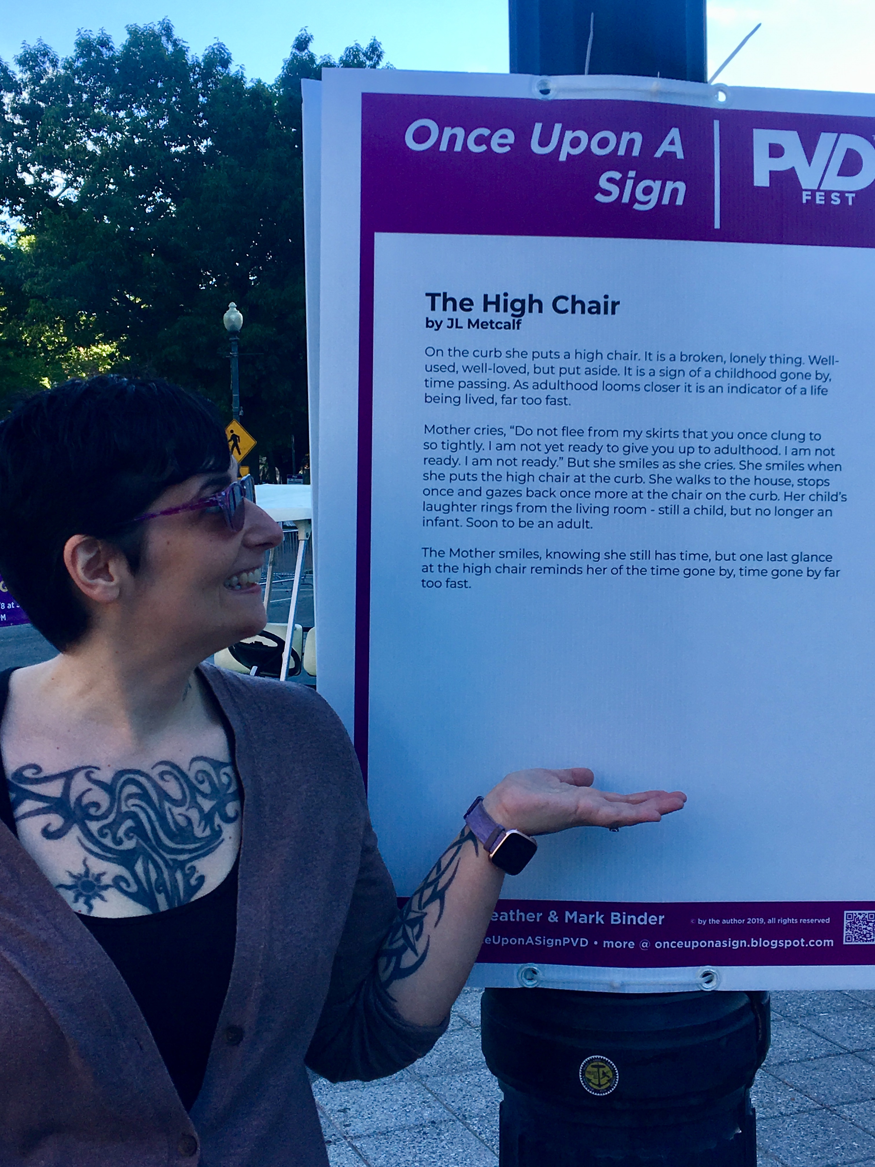 Fast-forward to the weekend of PVD Fest. My fiancé Frankie and I went over to Providence, to Kennedy Plaza, where my and many other amazing stories were posted, and I got to see MY sign.