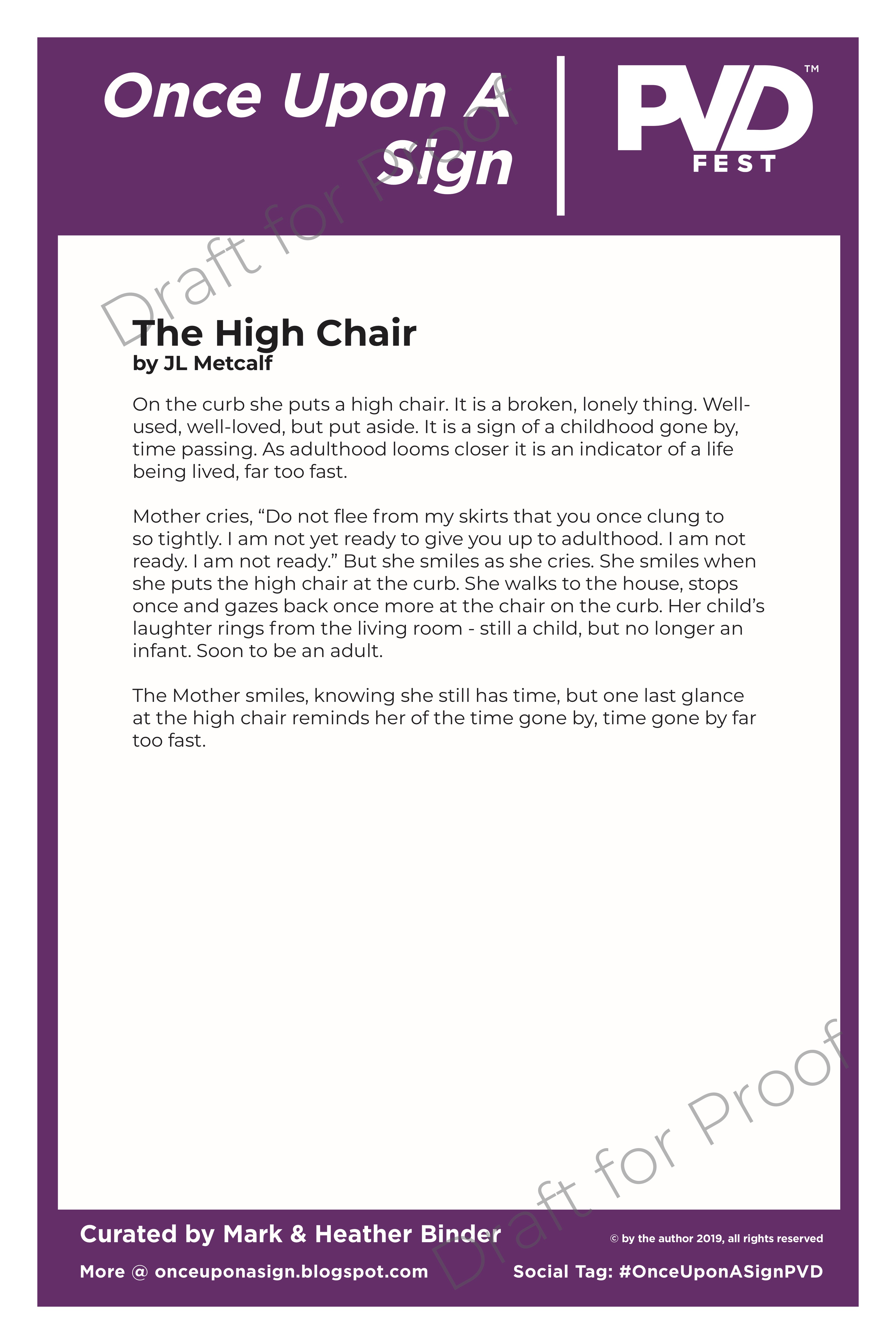 At the bottom of this post see a closer version of my story, “The High Chair” and let me know what you think!