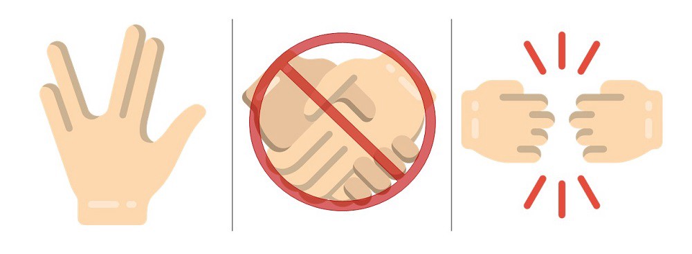 Non-contact greetings are best during an epidemic. [Credit: Compilation by Nancy R. Gough, BioSerendipity, LLC using icons from Smashicons from www.flaticon.com]