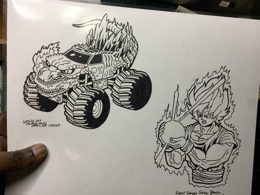 Godzilla 2014 Monster Truck & Super Sayan Goku Art $250