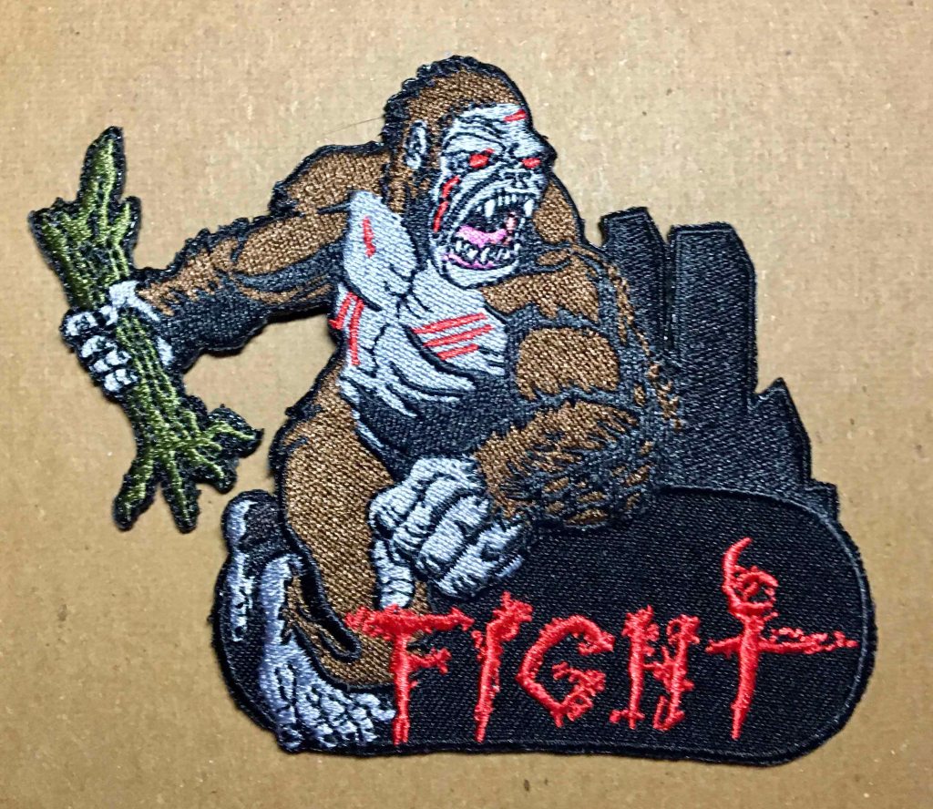 Fifteen roughly 3.25″ x 4″ Kong FIGHT Patches : Velcro Backing. No Title Card Art (Stored in a plastic sleeve).